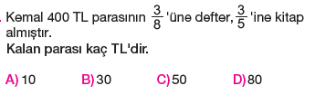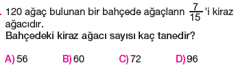 5.Sınıf Bir Çokluğun Kesir Kadarını Hesaplama Testi Çöz