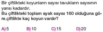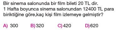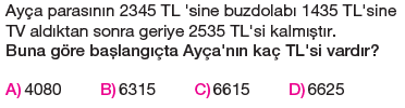 5.Sınıf Dört İşlem Problemleri Testi Çöz
