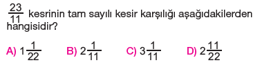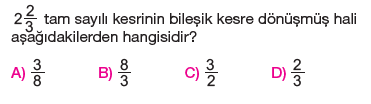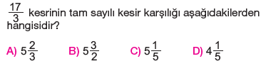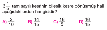 5.Sınıf Tam Sayılı Kesir Bileşik Kesir Dönüşümleri Testi Çöz