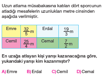 6.Sınıf Kesirleri Karşılaştırma Sıralama Testi Çöz