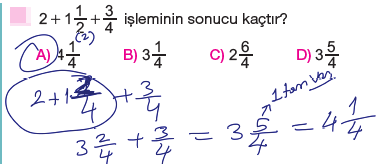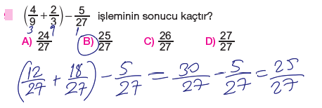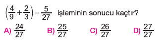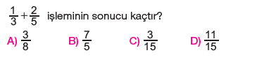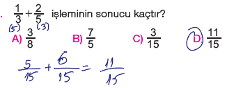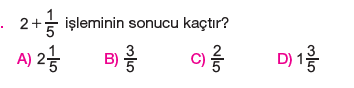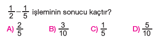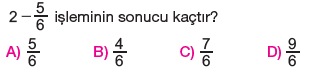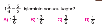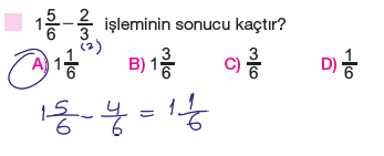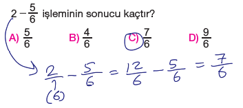 6.Sınıf Kesirlerle Toplama ve Çıkarma İşlemi Testi Çöz