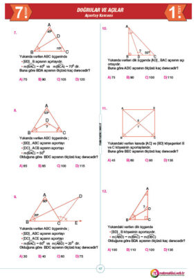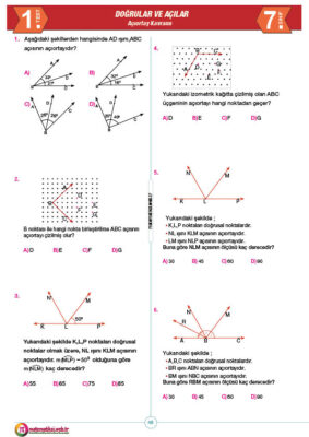 7.Sınıf Bir Açının Açıortayı Testi İndir- Testlerimiz kazanım odaklı hazırlanmıştır.