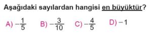 7.Sınıf Rasyonel Sayıları Sıralama Testi Çöz
