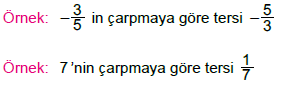 4. Ters Eleman:Çarpma işleminde bir sayının ters elemanı, pay payda yer değişmiş halidir.