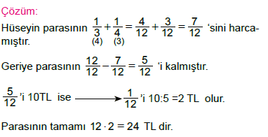 Çözüm: 1.yol:Bir varlığın kesir kadarı , varlıkla kesrin çarpımı kadardır.